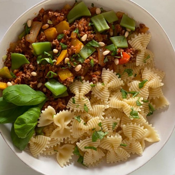 Farfalle rigate met een kleurijke en smaakvolle sausBereidingstijd: 30 minuten