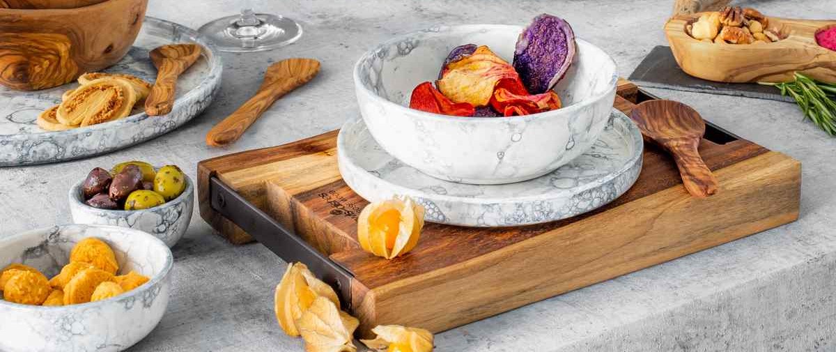 Bowls & dishes Olijfhouten borrelduo recht