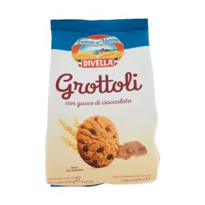 Farina di frumento 52,4%, zucchero, olio di girasole, amido di frumento, burro, cacao 3,7% latte fresco pastorizzato 3,6%, cioccolato fondente 3,1% (zucchero, pasta di cacao, cacao magro, aroma), emulsionante: lectina di soia, aromi, agenti lievitanti (carbonato acido di sodio, carbonato acido d’ammonio), sale.